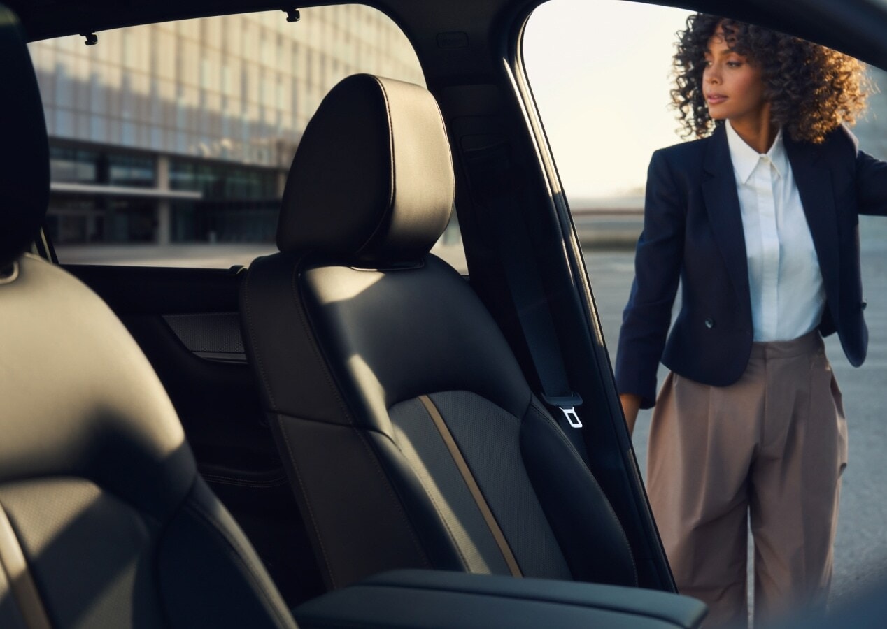 Once inside the 2026 Mazda CX-90 PHEV, you'll find a meticulous interior focused on comfort and style. The cabin accommodates seven passengers, featuring optional second-row captain's chairs for added space and third-row access. Premium materials create a more sophisticated atmosphere, including Nappa leather upholstery and genuine wood trim. Sarasota drivers will appreciate the 12-way power-adjustable front seats with memory function and the tri-zone automatic climate control, providing personalized comfort.